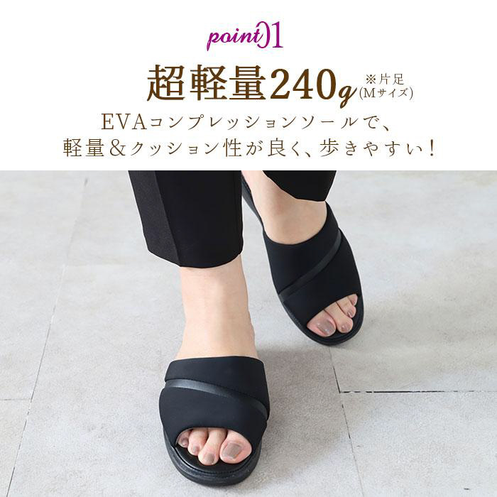 ■一足約240g(※Mサイズの重量です)と軽く、履き替え用に持ち運びやすいのも嬉しいポイント。