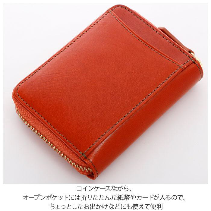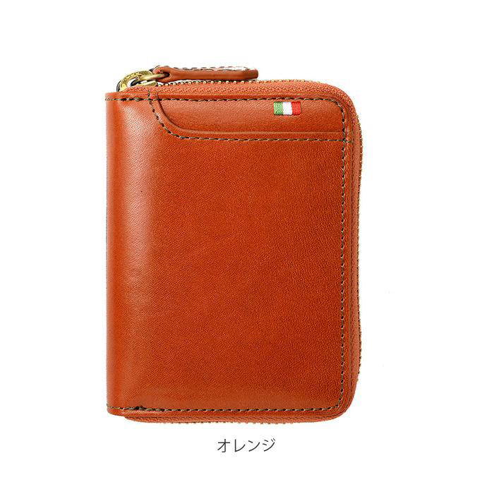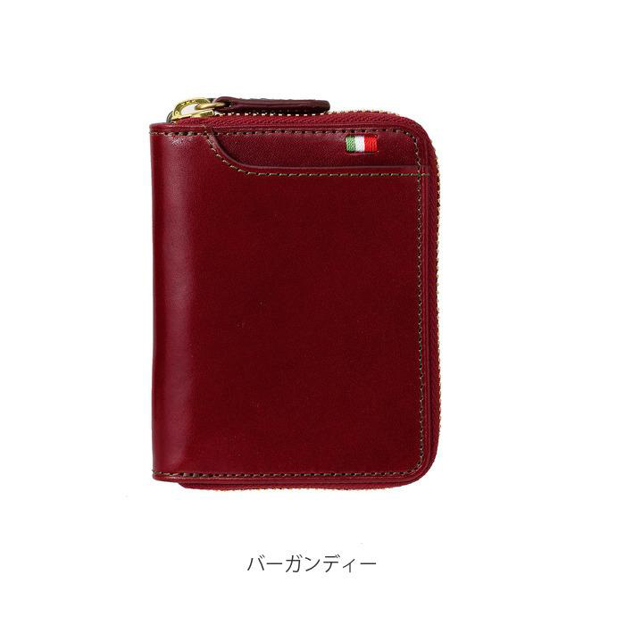 美しい光沢と滑らかな手触り。熟練の職人が手がける手染め技法でアンティークな雰囲気漂うイタリアンレザーは、ギフトにも最適横型のラウンドジップを開くとボックス型のコインケース。