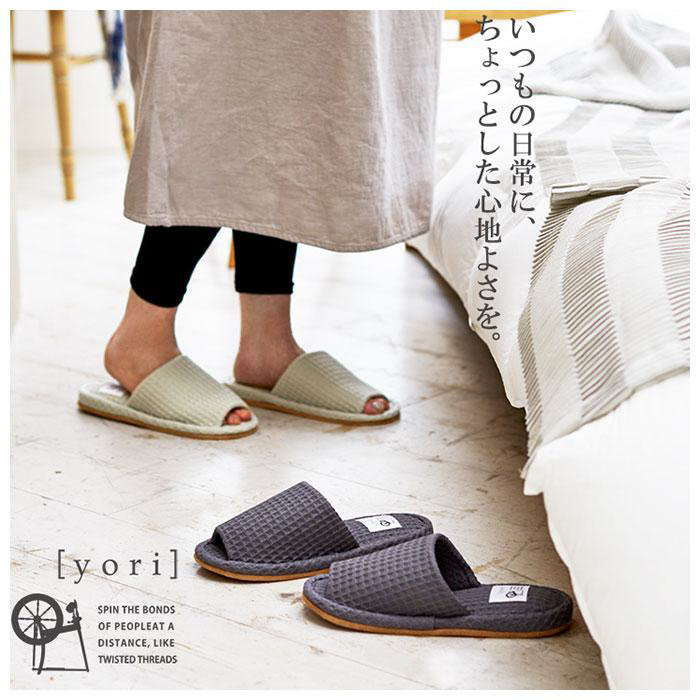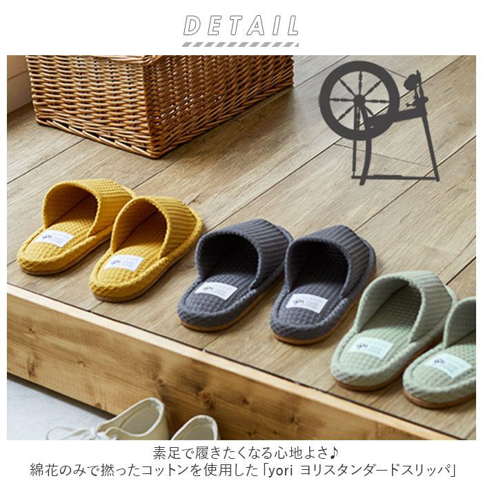 素足で履きたくなる心地よさ♪綿花のみで撚ったコットンを使用した「yori ヨリスタンダードスリッパ」。