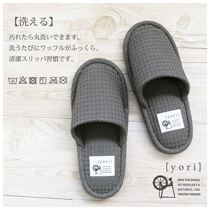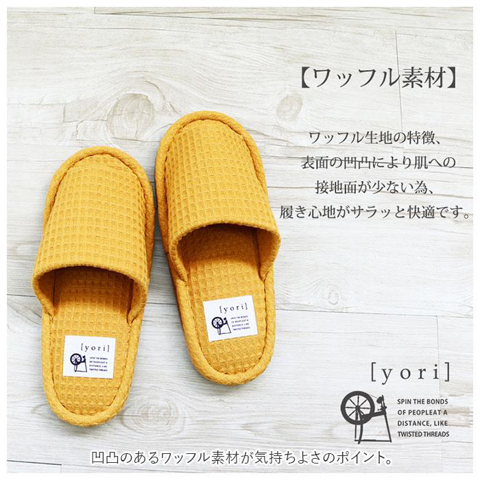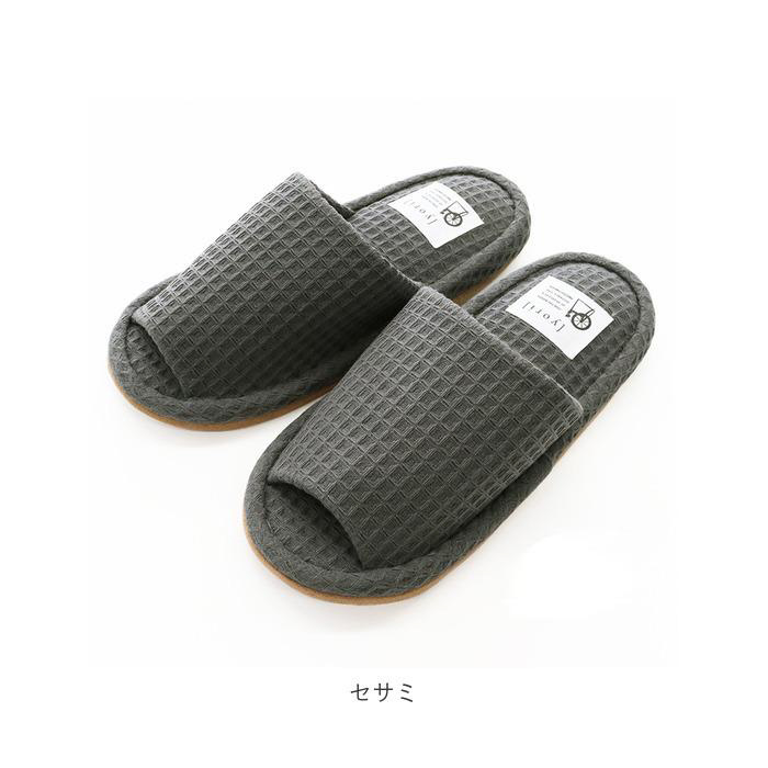 ■綿花のみで撚ったコットンを使用した「yori ヨリスタンダードスリッパ」。