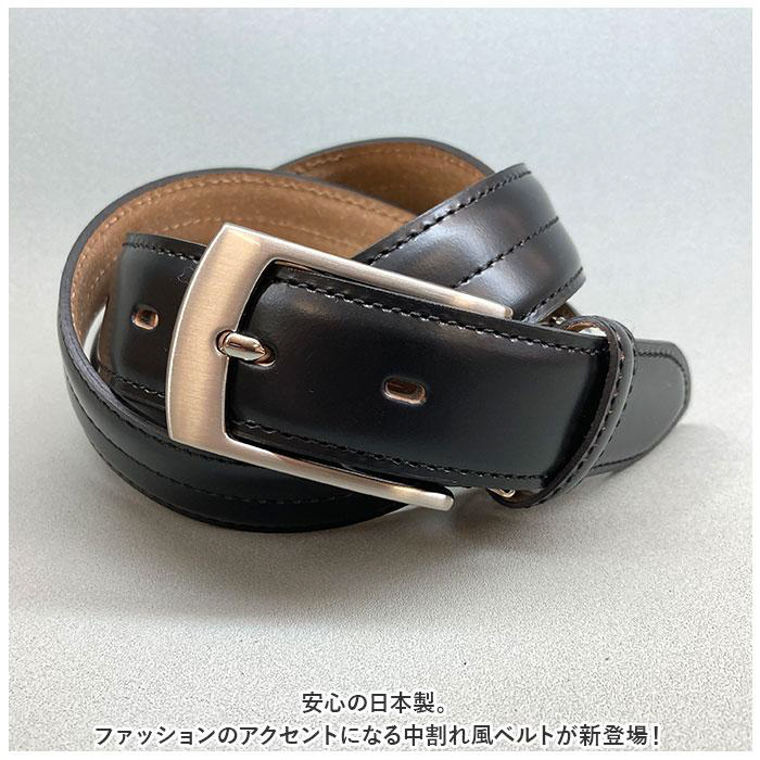 ■通勤や日常使いに活躍する中割れ風ベルト。