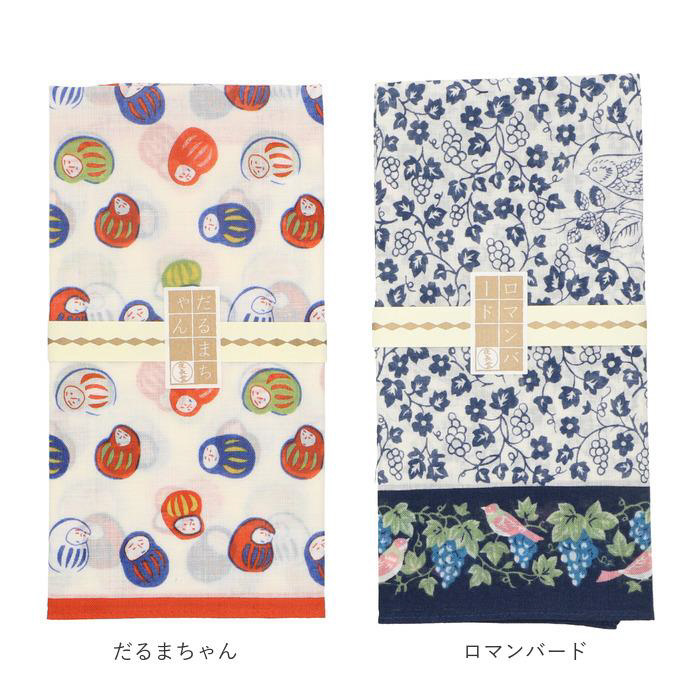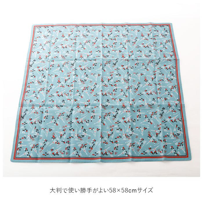 モダンでかわいい着物や包み紙の柄が、レトロでキュート♪夜長堂 大判ハンカチ 58×58cm綿100%。