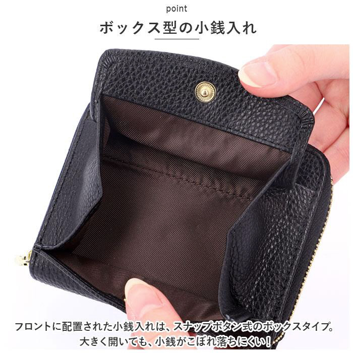 ■フロントに配置された小銭入れは、スナップボタン式のボックスタイプ。