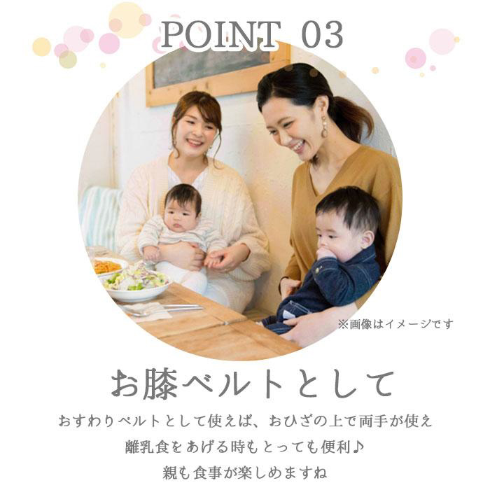 ■おすわりベルトとして使えば、おひざの上で両手が使え離乳食をあげる時もとっても便利♪