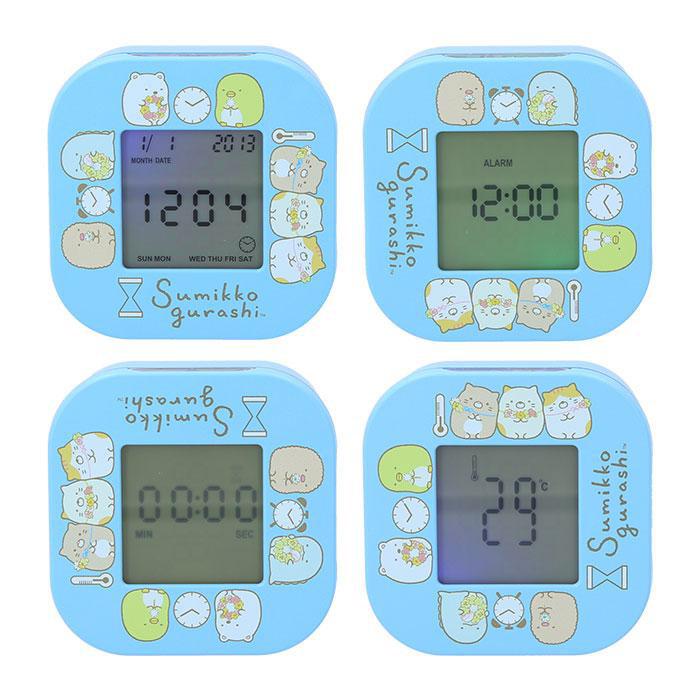 コロンと転がすと、4つの機能を順番に表示!キッズも大人も大好きな「すみっコぐらし」のマルチ機能クロック。