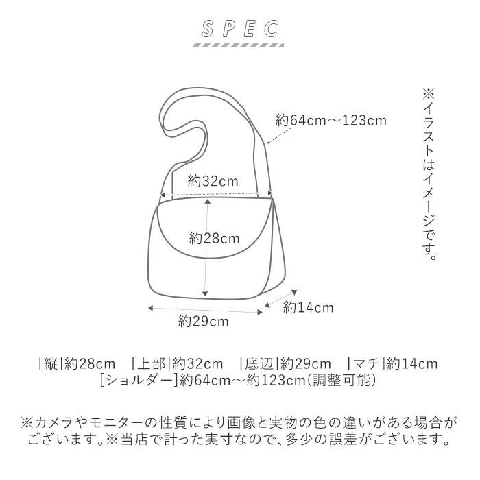 ・サイズ: [縦] 約28cm [横(上部)] 約32cm [横(底辺)] 約29cm [マチ] 約14cm [ショルダー] 約64cm〜約123cm(調節可能)