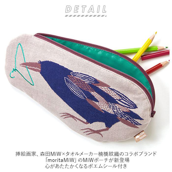 ■挿絵画家、森田MiW×タオルメーカー楠橋紋織のコラボブランド「moritaMiW」のMiWポーチが新登場。