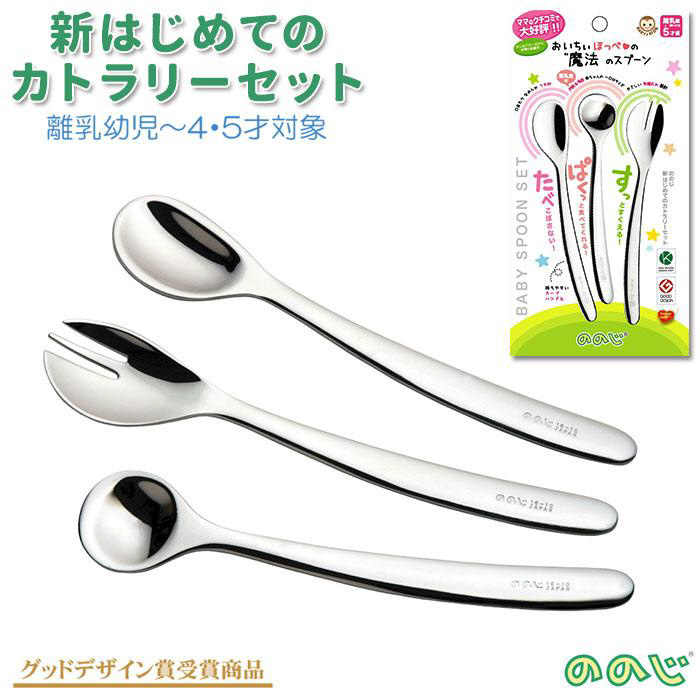 「赤ちゃんが生まれてはじめて離乳食を食べる自分独りで食べる」まで、一連の作業を学ぶための「新はじめてのカトラリーセット」。