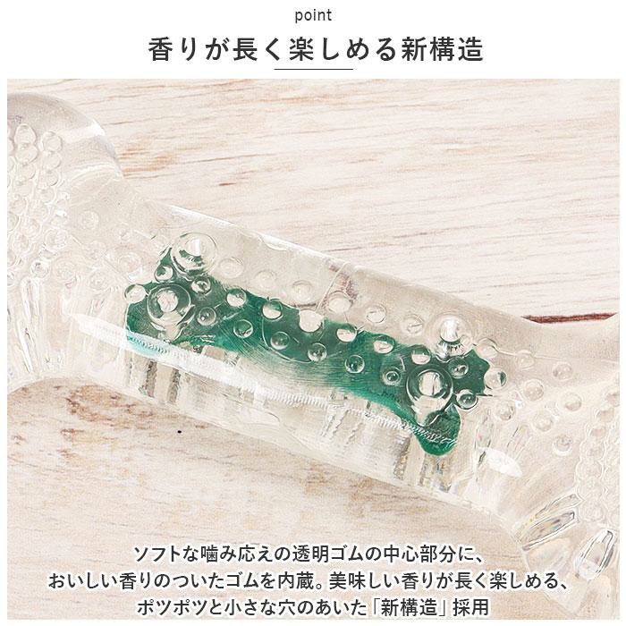 ■ソフトな噛み応えの透明ゴムの中心部分に、おいしい香りのついたゴムを内蔵。
