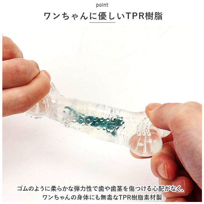 ■ゴムのように柔らかな弾力性で歯や歯茎を傷つける心配がなく、ワンちゃんの身体にも無毒なTPR樹脂素材製。