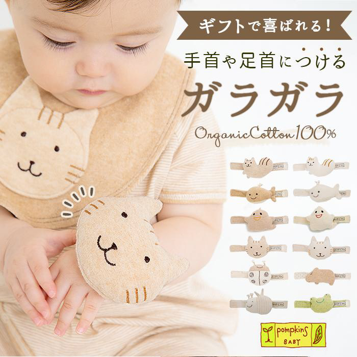 オーガニック素材がベビーにとっても優しい。POMPKINS オーガニックリストガラガラ。