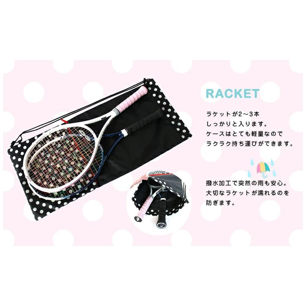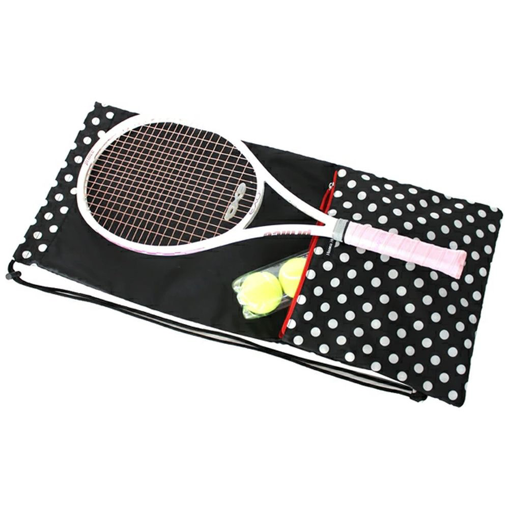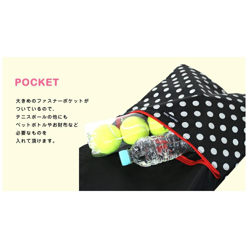 小物を入れるのに便利なファスナーポケット付。2〜3本ラケットが収納できます。