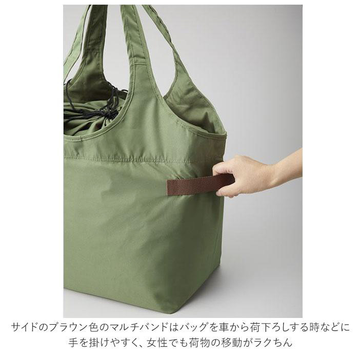 ■バッグの口元は巾着のようにヒモでしぼることができるので、たっぷりお買い物した時も収納した食材があふれずに安心。