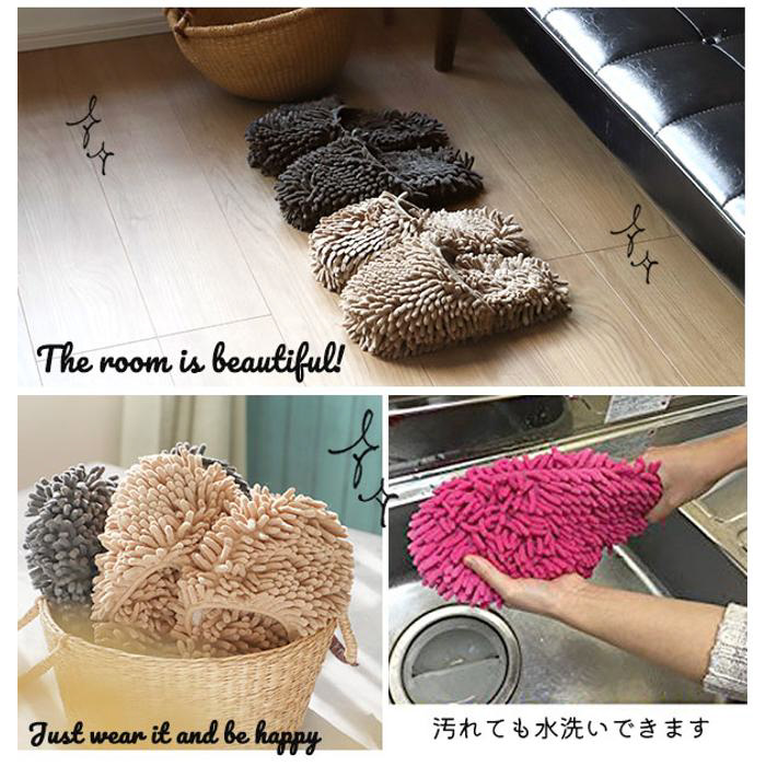超極細繊維マイクロファイバーがミクロ単位の小さいゴミもサッとふきとり、履いて歩くだけで掃除ができちゃうモップスリッパです♪