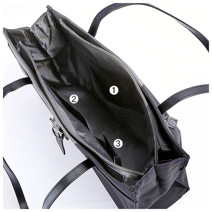 ■メインルーム内側にはオープンポケットが3箇所に配置されていて、バッグの中で小物が迷子にならない。