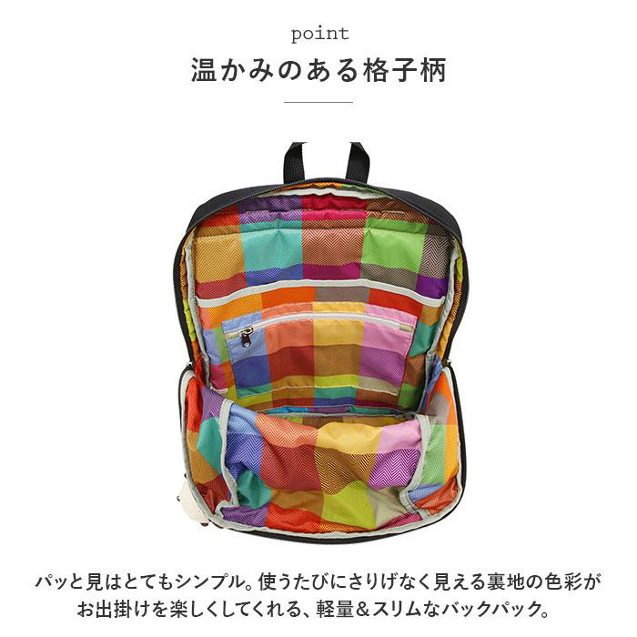 ■使うたびにさりげなく見える裏地の色彩がお出掛けを楽しくしてくれる、軽量&スリムなバックパック。