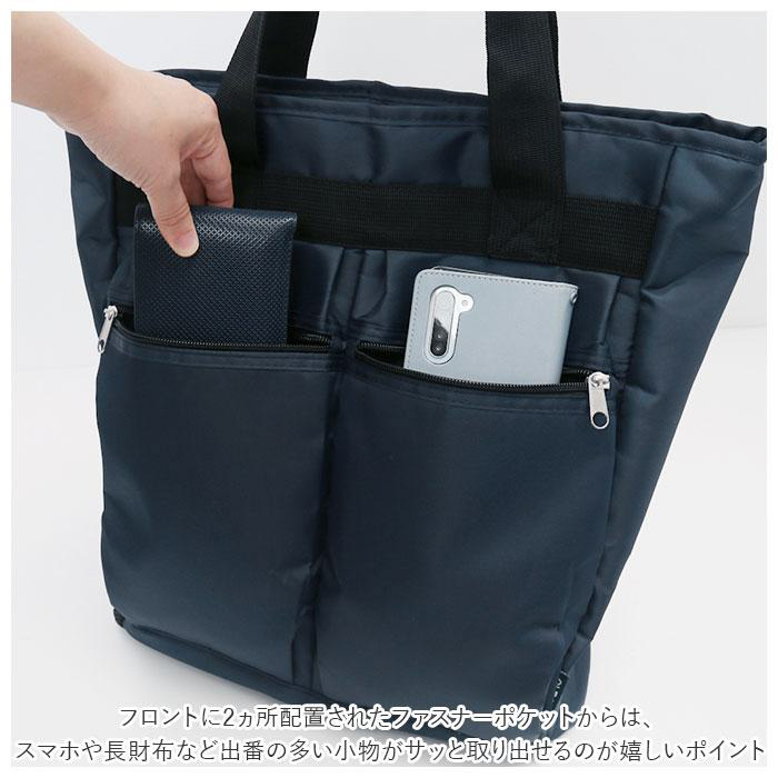 ■フロントに2ヵ所配置されたファスナーポケットからは、スマホや長財布など出番の多い小物がサッと取り出せるのが嬉しいポイント!