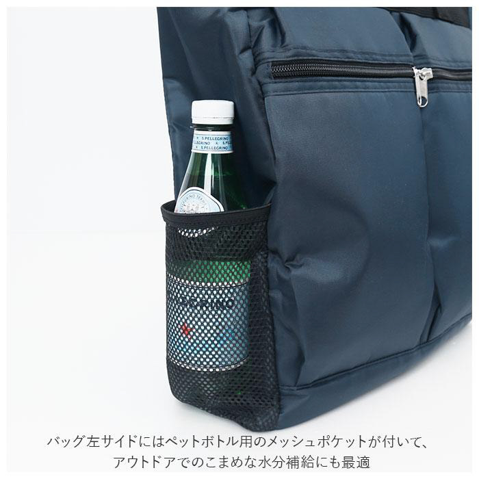 ■さらに、バッグ左サイドにはペットボトル用のメッシュポケットが付いて、アウトドアでのこまめな水分補給にも最適。