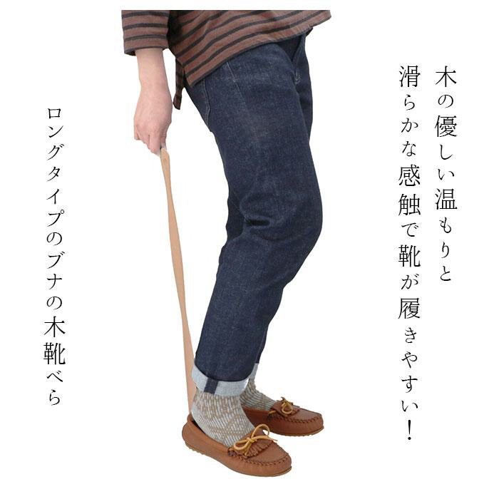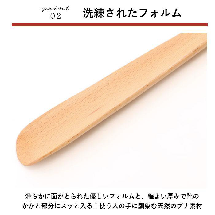 木の優しい温もりと、滑らかな感触で靴が履きやすい!ロングタイプのブナの木靴べら、2タイプ。