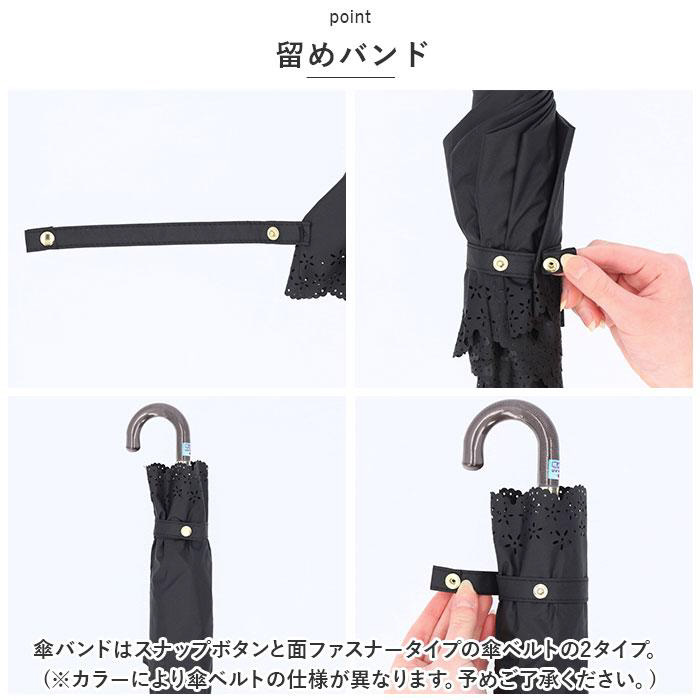 ■傘バンドはスナップボタンと面ファスナータイプの傘ベルトの2タイプ。(※カラーにより傘ベルトの仕様が異なります。予めご了承ください。)