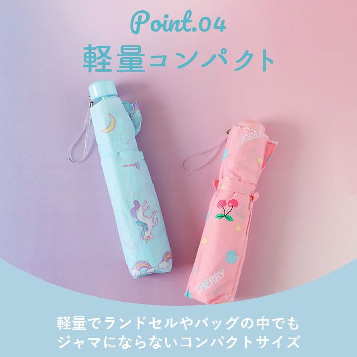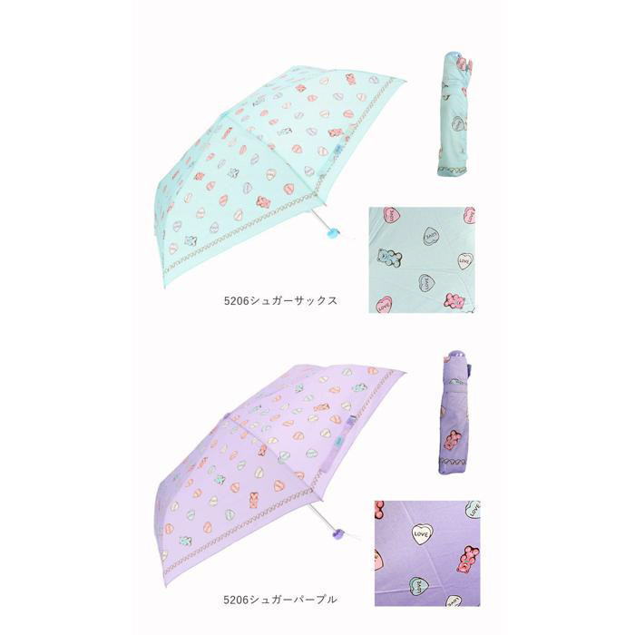 パステル調の生地に散りばめたモチーフがとってもキュート!ミニポンジー、ガールズ用折りたたみ傘。