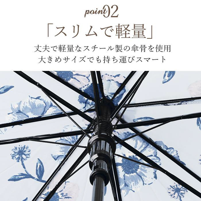 ■親骨と受け骨に、丈夫で軽量なスチール製の傘骨を使用しているので、大きめサイズでも持ち運びスマート。