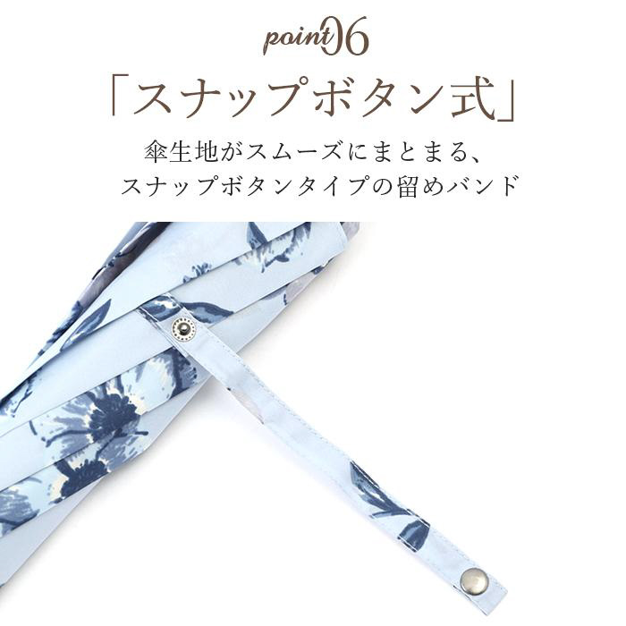 ■傘生地がスムーズにまとまる、スナップボタンタイプの留めバンドを採用。