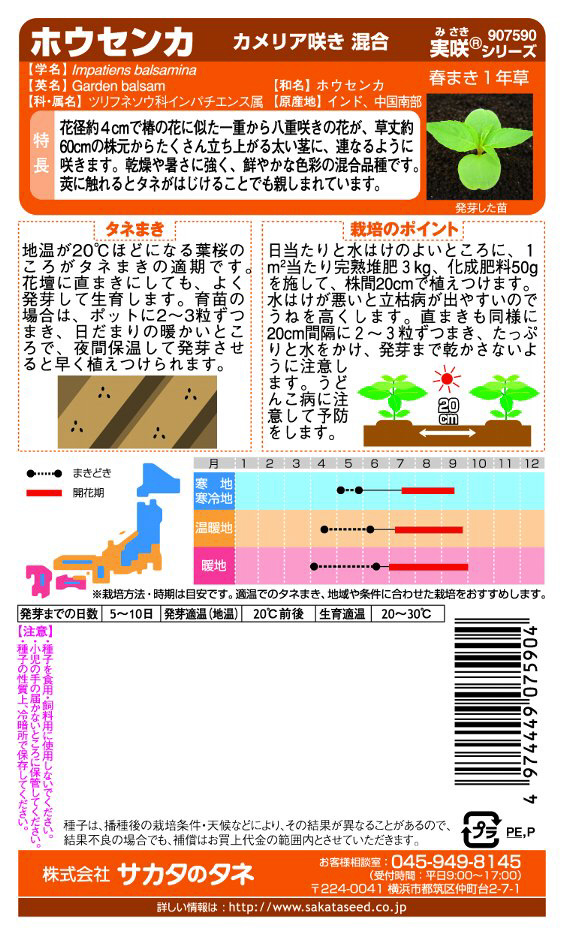 実咲 ホウセンカ カメリア咲き混合