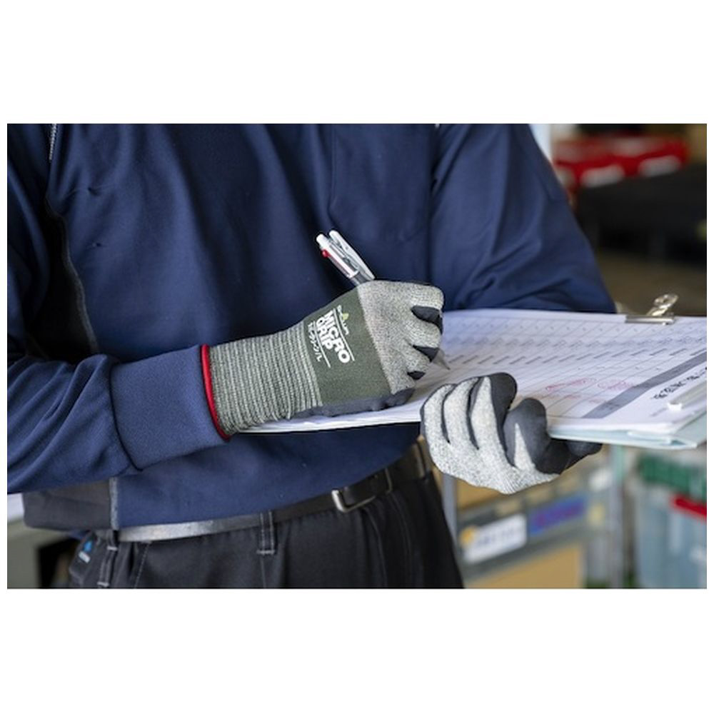 ■マイクロファイバーの編み目を密にすることで肌への密着性を高め、手袋内面の滑り止め効果を高めた作業用手袋。