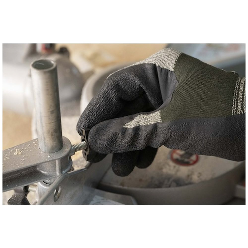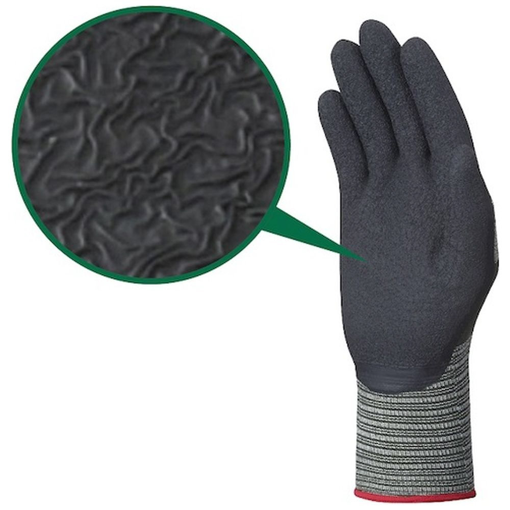 ■独自の葉脈状加工を施した天然ゴムコーティングの作業手袋で、高い滑り止め効果を発揮。