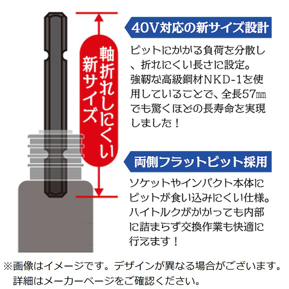 ■さらに負荷のかかる軸部の全長を見直し、40V及び36V・18Vのハイトルクのインパクトドライバーを使用しても軸折れしにくい設計にしました。