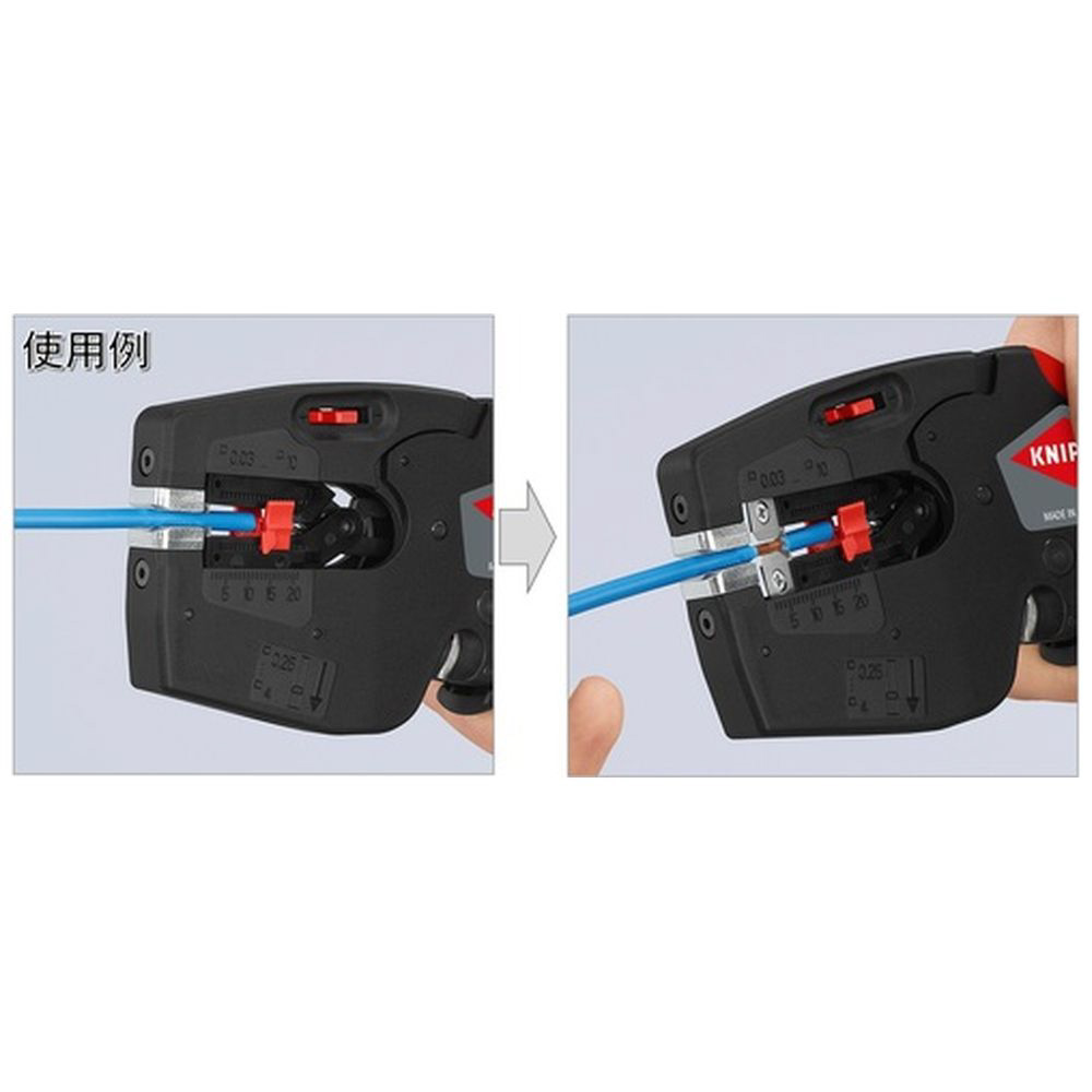 ■0.25〜4平方ミリメートル、2X2.5平方ミリメートルの範囲内で自動で調整されるので、さまざまなサイズに合わせた素早い圧着作業が可能になります。