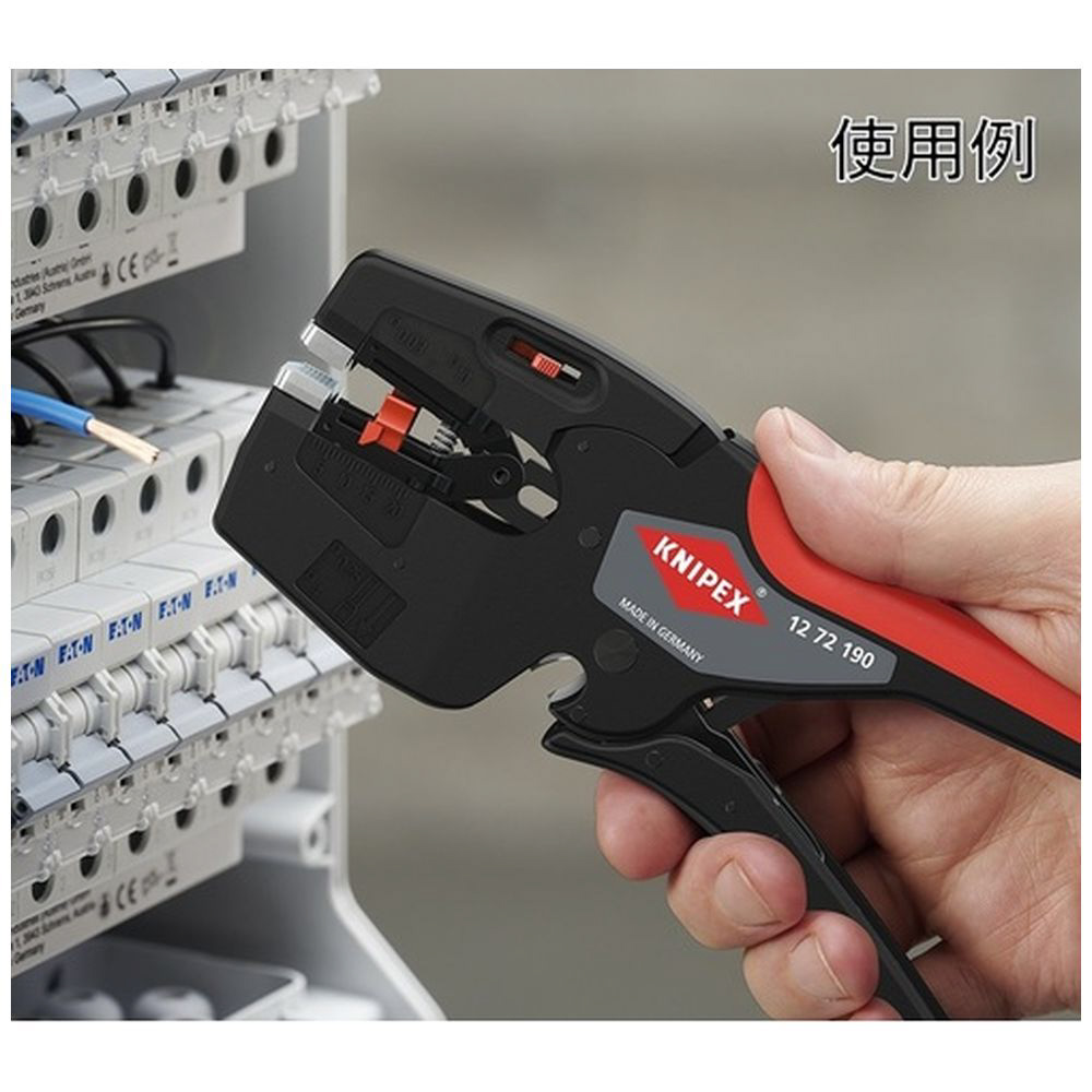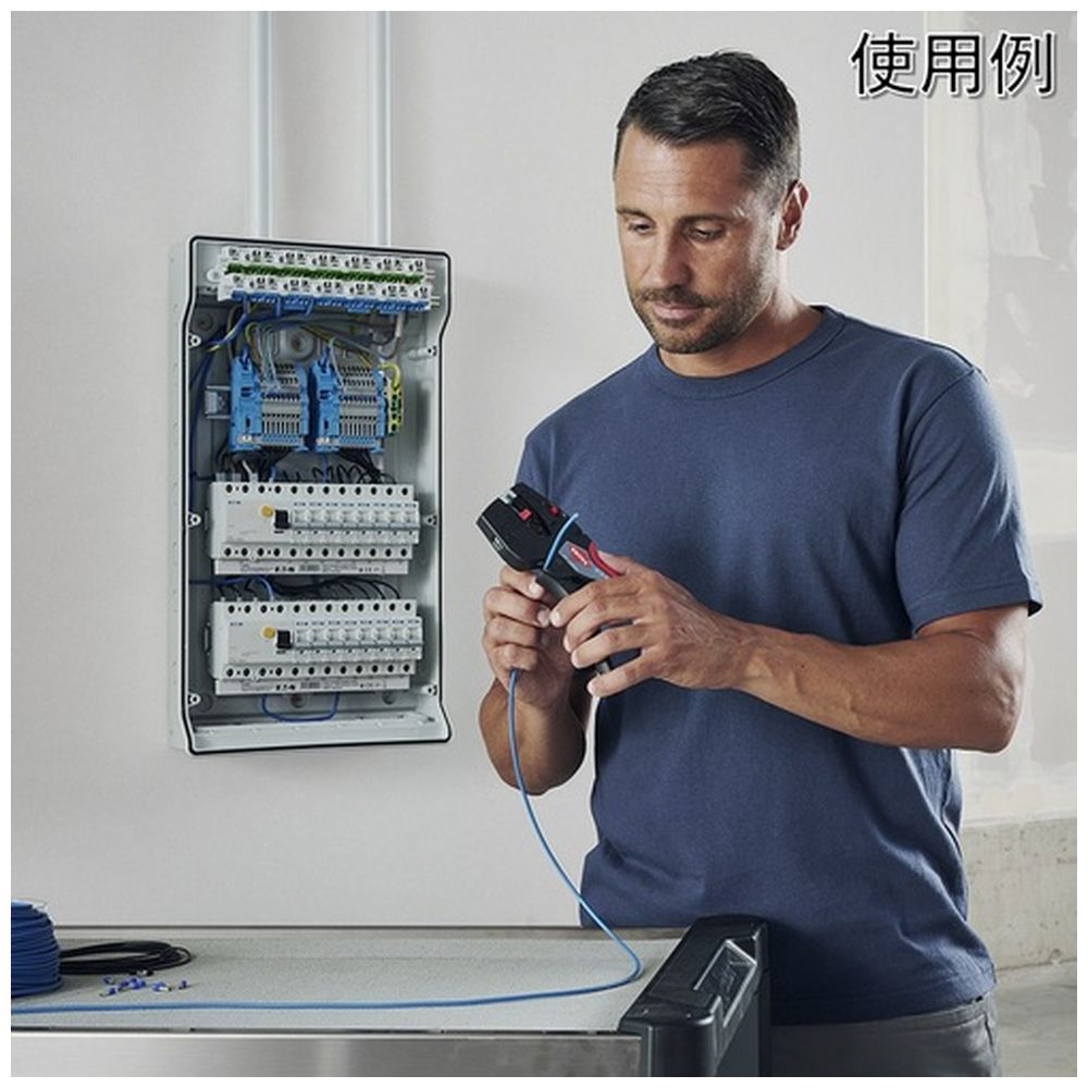 ・電線被覆剥き(0.03〜10平方ミリメートル)、フェルール端子圧着(0.25〜4平方ミリメートル[四角])、電線切断(10平方ミリメートルまで)