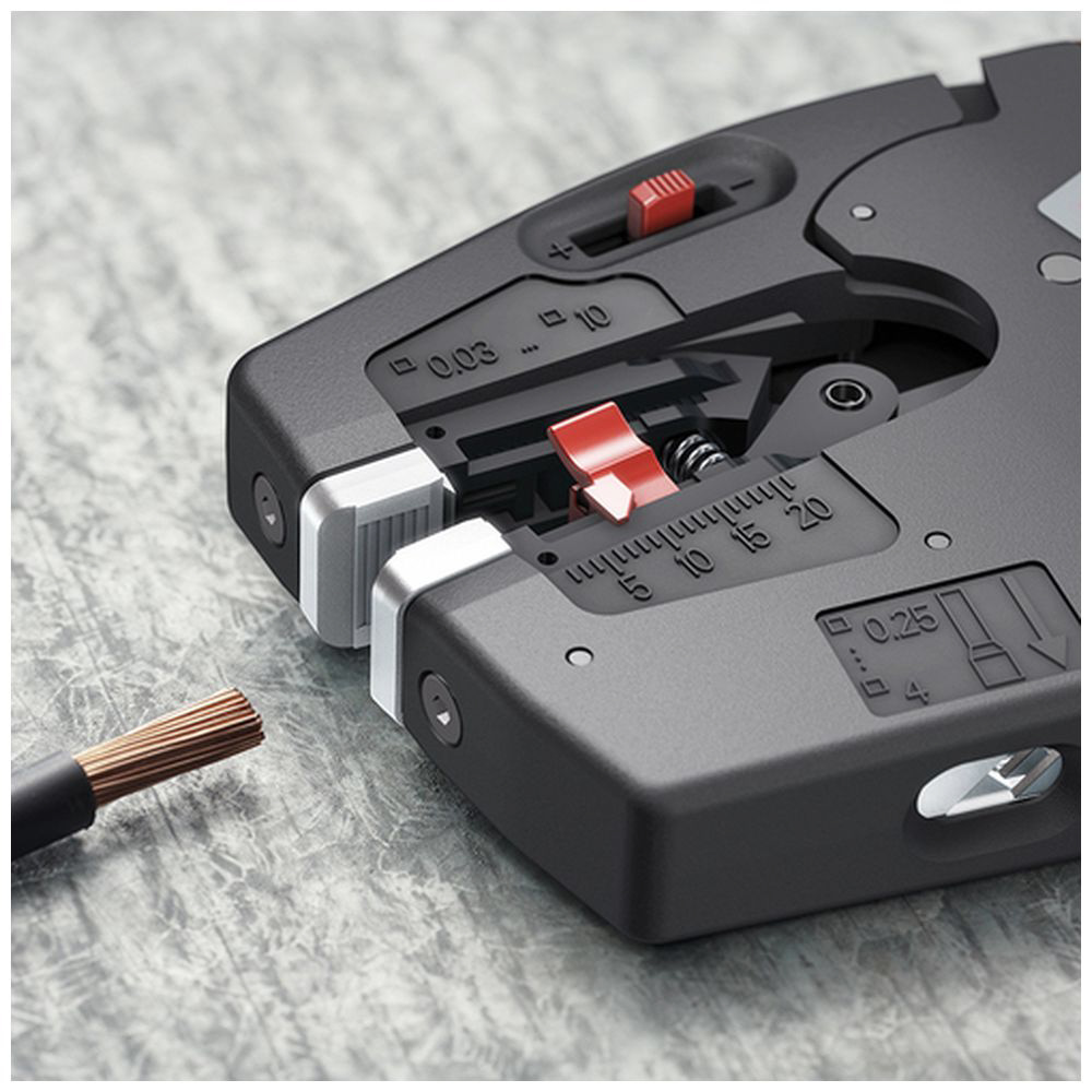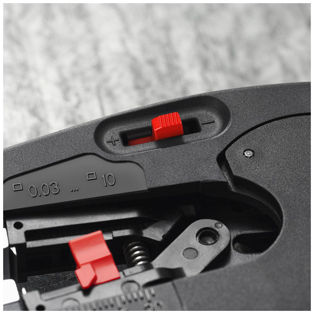 ■微調整機能付きのストリッピング ー0.03から10 平方ミリメートルの可とう性導体や単線(AWG 32から8)の被覆材質の硬さや気温条件に合わせて最適に調整できます。