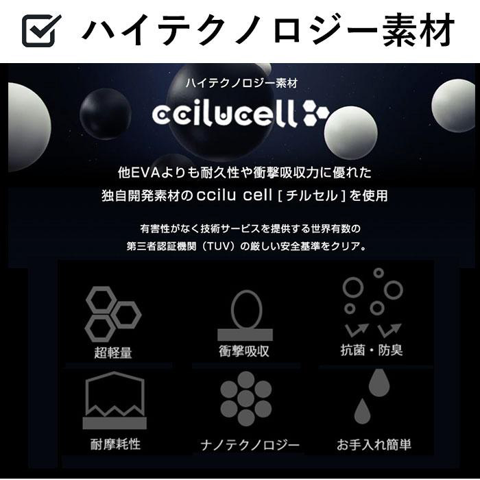 ■耐久性衝撃吸収力軽量抗菌防臭に特化した独自開発素材のccilu cell(チルセル)を使用。