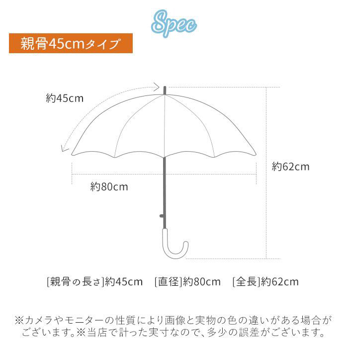 ・サイズ: ・親骨45cmタイプ [親骨の長さ] 約45cm/ [直径] 約80cm/ [全長] 約62cm・親骨50cmタイプ [親骨の長さ] 約50cm/ [直径] 約86cm/ [全長] 約69cm