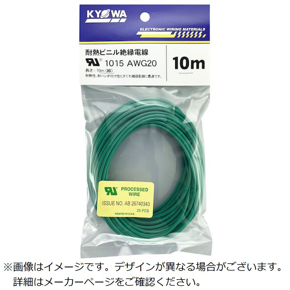 KYОWA UL耐熱ビニル絶縁電線 UL1015 AWG20 10M 緑