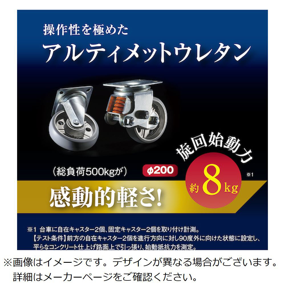 ■重量物でも極めて軽快に搬送できる「アルティメットウレタン車輪」を使用しています。