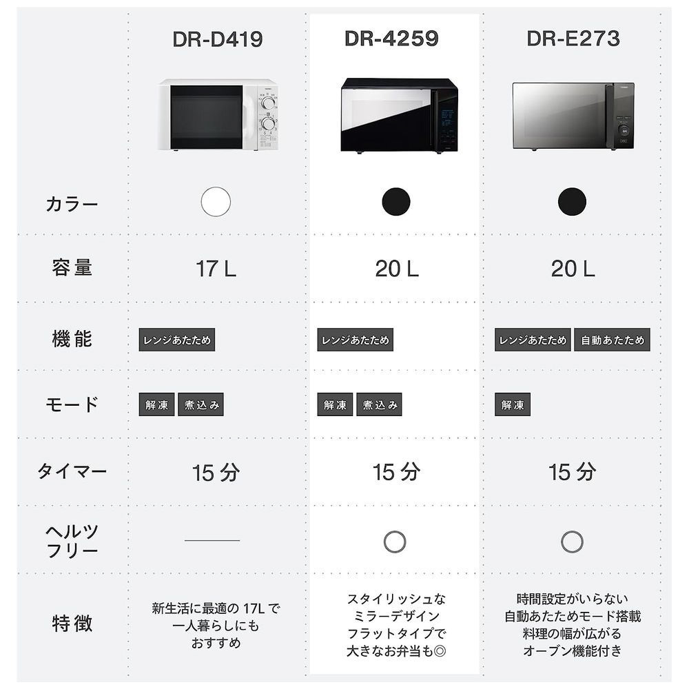 ミラーガラスフラット電子レンジ ibistory ブラック BMDR-4259B [20L /50/60Hz]