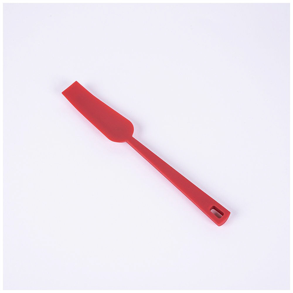 器の側面にピッタリフィット。深い瓶の中身もきれいにすくい取れ、食材を和えるまでこれ一本できるシリコンスプーン。