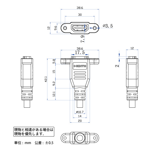「パネルマウント用 イーサネット対応ハイスピードHDMI延長ケーブル」