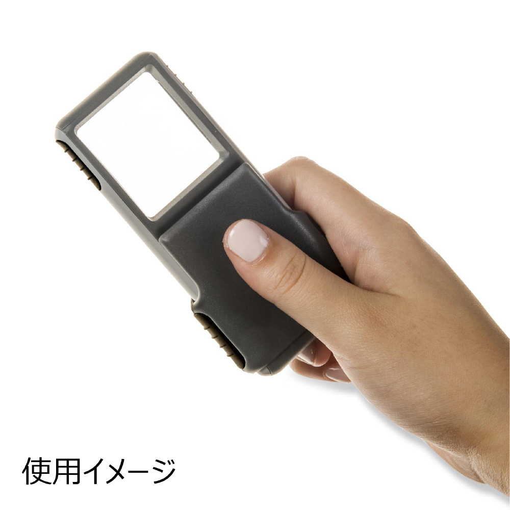 歪みを抑える非球面レンズを採用し、より鮮明に見ることが出来ます。倍率は3倍。上下スライド式で手軽に開閉、収納が出来ます。レンズを引き出すとLEDが点灯。