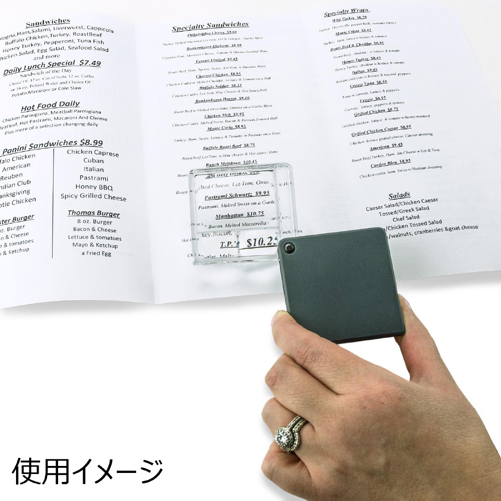 持ち運びに便利な2.5倍(スポット5倍/7倍)フリップ式ルーペ。