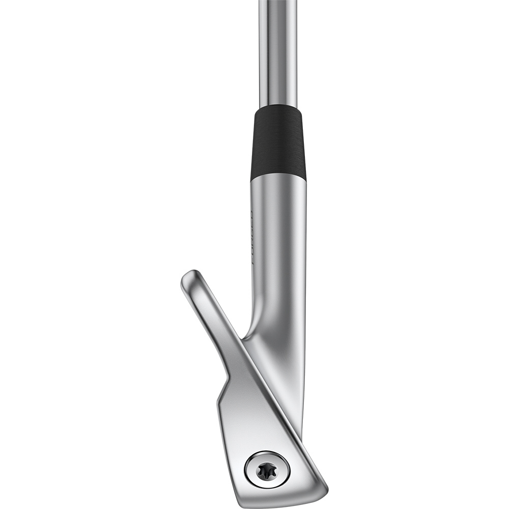トッププレイヤーの要望から生まれたBLUEPRINTアイアン。多くの勝利を重ねてきたBLUEPRINTが進化し、操作性、弾道コントロール、優れたフィーリングを重点に開発されました。コンパクトなヘッドは、アドレス時にクリーンな印象を持てるようにヒールフェースの高さを短かくし、ホーゼルからトップレールにかけての設計がシャープになり、構えやすさが向上。軟鉄鍛造製法のマッスルバックアイアンはツアープレイヤーが求める高い操作性と打感を実現。さらに、削り出しのマイクロマックスグルーヴが溝に搭載され、様々なシチュエーションでスピン性能が安定するBLUEPRINT T。”T”はTOURの頭文字で、TOUR選手向けのアイアンであることを表しています。