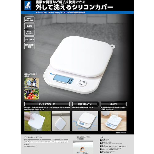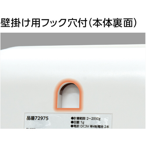 (1)ひょう量 2000g(2)最小表示 1g(3)計量範囲 2〜2000g(4)精度※ 2g以上500g以下: ±2g 500gを越え2,000g以下: ±3g(5)目量 1g(6)保管温度・湿度 温度: -10〜60℃ 湿度: 85%以下(7)オートパワーオフ 無操作状態で約5分後(8)液晶表示 LCD 文字高表示15mm(9)計量皿寸法 124×124mm(10)電源 単4乾電池 2本 (付属の電池はモニター用の為、寿命が短い場合があります。)