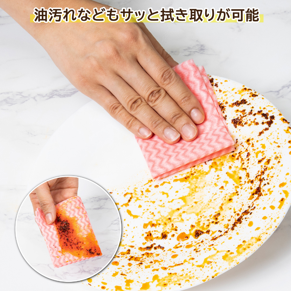 油汚れなどもサッと拭き取りができる。台拭き、食器拭き、お掃除などに。