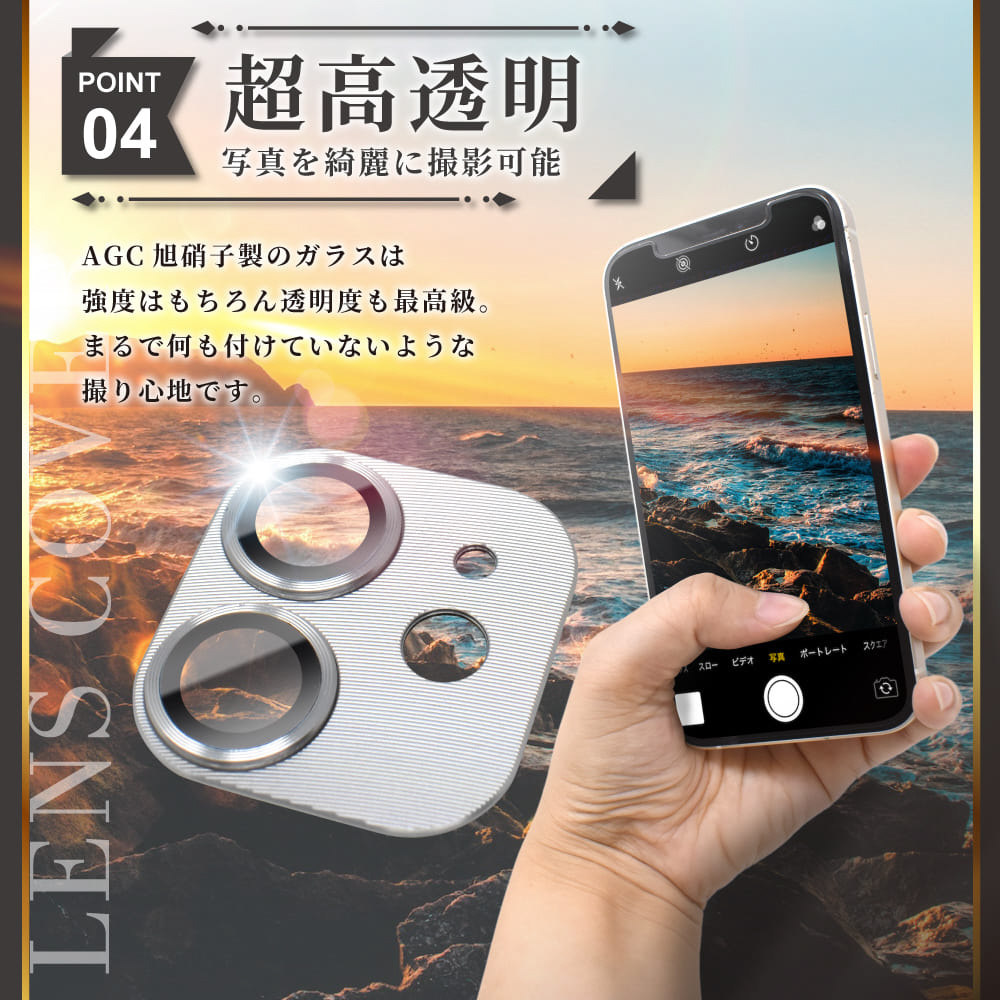 AGC旭硝子社製ガラスを採用した背面カメラ部専用ガラスフィルム万が一の場合でもレンズ部分への衝撃を最小限に抑えます