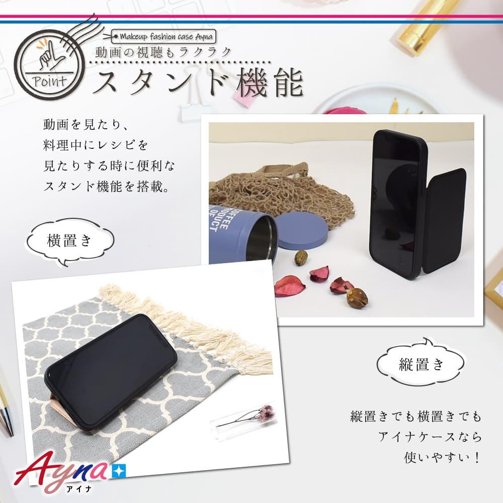 いつでもどこでも簡単チェック!ミラー付スマホケース背面ミラーを立てると便利なスタンドに大変身!