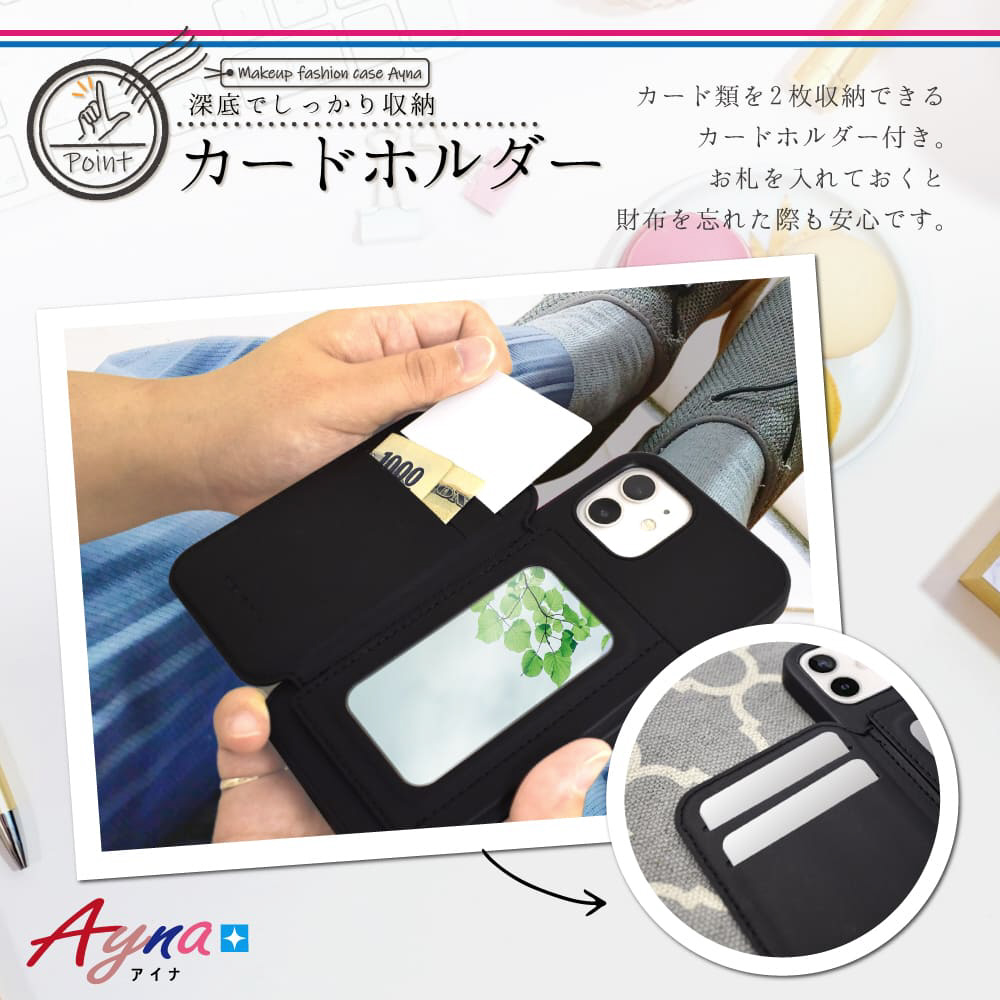いつでもどこでも簡単チェック!ミラー付スマホケース