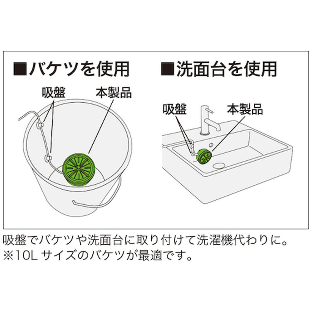 バケツや洗面台を洗濯機として使用できます。